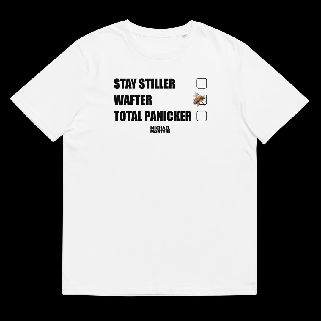 How do you cope with bees & wasps?? Give your friends a heads up whether you're a Stay Stiller, Wafter, or Total Panicker with this official t-shirt.